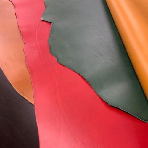 Working with our innovative suppliers in all types of leather, our vegetable tanned leather is full grain, aniliine coloured shoulder, supplied in full hides with average size arpound 16 sq.ft (1.49 sq.metres). These beautifully finished hides are dyed through not surface dyed.